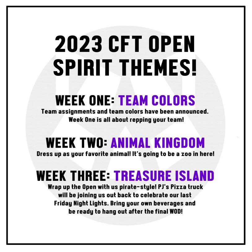 It’s that time, CFT!!! CFT Open team assignments are on the kitchen whiteboard, and on Thursday 2/16 the first 2023 CrossFit Open WOD will be announced!